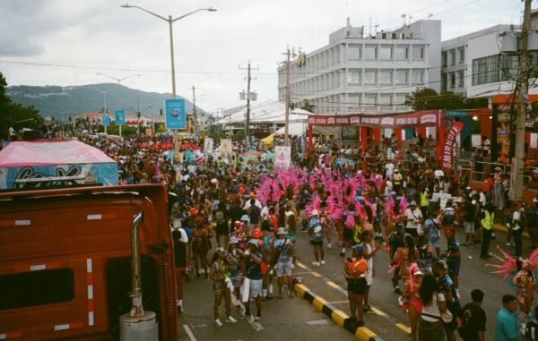 A magical, colourful spectacle is unfolding on the streets of Kingston. People are covered in jewels from head to toe, and women are carrying flowery wings like carnival fairies. Trucks roll slowly through shut-down streets, bass travelling through concrete before it reaches bone, while feathers and sequins catch the afternoon sun that’s beating down as the Road March parade – the biggest day of Carnival In Jamaica’s week-long celebrations – takes over the city.