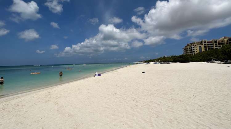White sand that stays cool underfoot. Water so clear you see the bottom without stepping in. In Oranjestad, rows of coral and pastel buildings line the harbor, with Dutch gables and shaded streets just a few minutes from the airport. Up the coast, Palm Beach runs in a long, active stretch of perfect white coastline — beach bars open to the sand, catamarans anchored just offshore, music carrying across the sand. On the island’s southern edge, Baby Beach curves into a wide, shallow lagoon, the water calm enough to wade out for hundreds of feet.