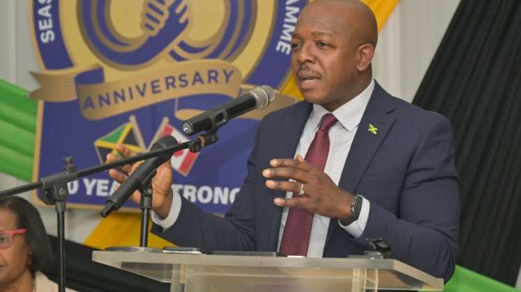 Minister of Labour and Social Security, Hon. Pearnel Charles Jr., delivers the keynote address at the launch of the Government of Jamaica’s Seasonal Agricultural Workers Programme (GOJ/SAWP) Scholarship, held on Tuesday (March 31) at the Ministry’s Overseas Employment Centre, on East Street in Kingston. Sixty scholarships will be awarded for the start of the 2026/2027 academic year, in recognition of the 60th anniversary of the SAWP. (JIS Photo)
