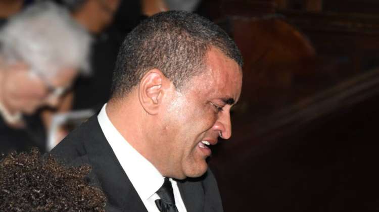 Jolyan Silvera crying during the January 12, 2024 funeral for his wife at St Andrew Parish Church. Photo: Joseph Wellington