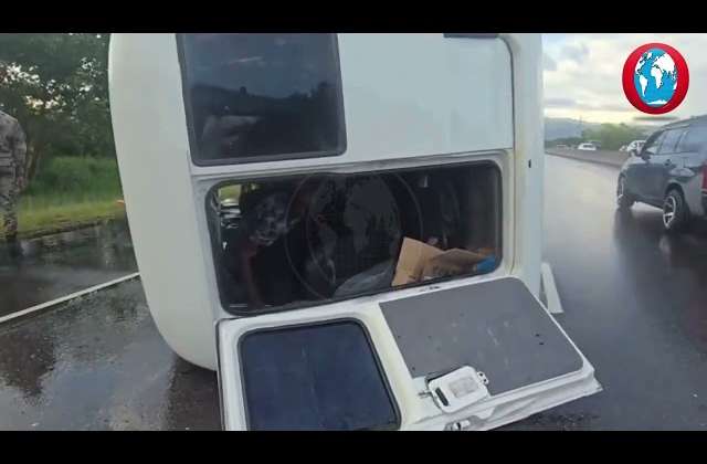 It is understood that about 4:30pm, the bus was travelling along the highway with seven people aboard when the vehicle skidded on the wet road before it crashed into the median and overturned.